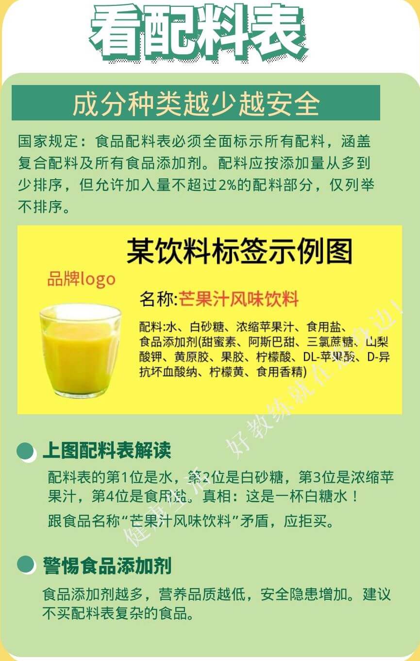 配料表揭示了該食品的成分及其含量順序,包括主要成分、添加劑、糖、鹽含量,以及過敏原信息。成分種類越少,通常越安全。
